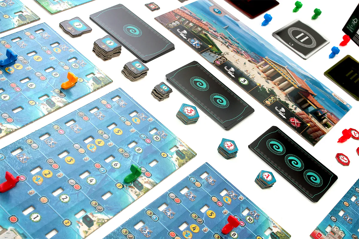 Plansze Stoczni: Każdy gracz otrzymuje własną planszę stoczni, na której śledzi postępy swoich czterech flot (czerwonej, niebieskiej, żółtej i zielonej), z których każda oferuje inne profity.