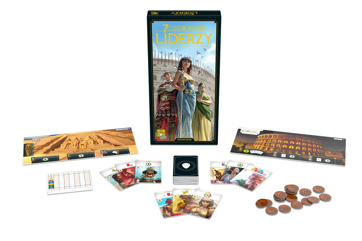 Wzmocnij swoją cywilizację autorytetem najpotężniejszych postaci antyku! 7 Cudów Świata: Liderzy to kluczowe rozszerzenie w nowej, odświeżonej edycji, które wprowadza do gry postacie historyczne – od mędrców i strategów po wielkich władców. Dzięki nim Twoje miasto zyska unikalny kierunek rozwoju jeszcze przed wzniesieniem pierwszych budowli.