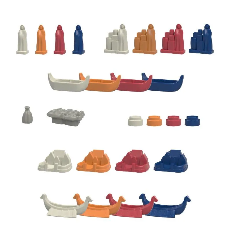 88 kolorowych pionków (statki, osadnicy, porty, rycerze),