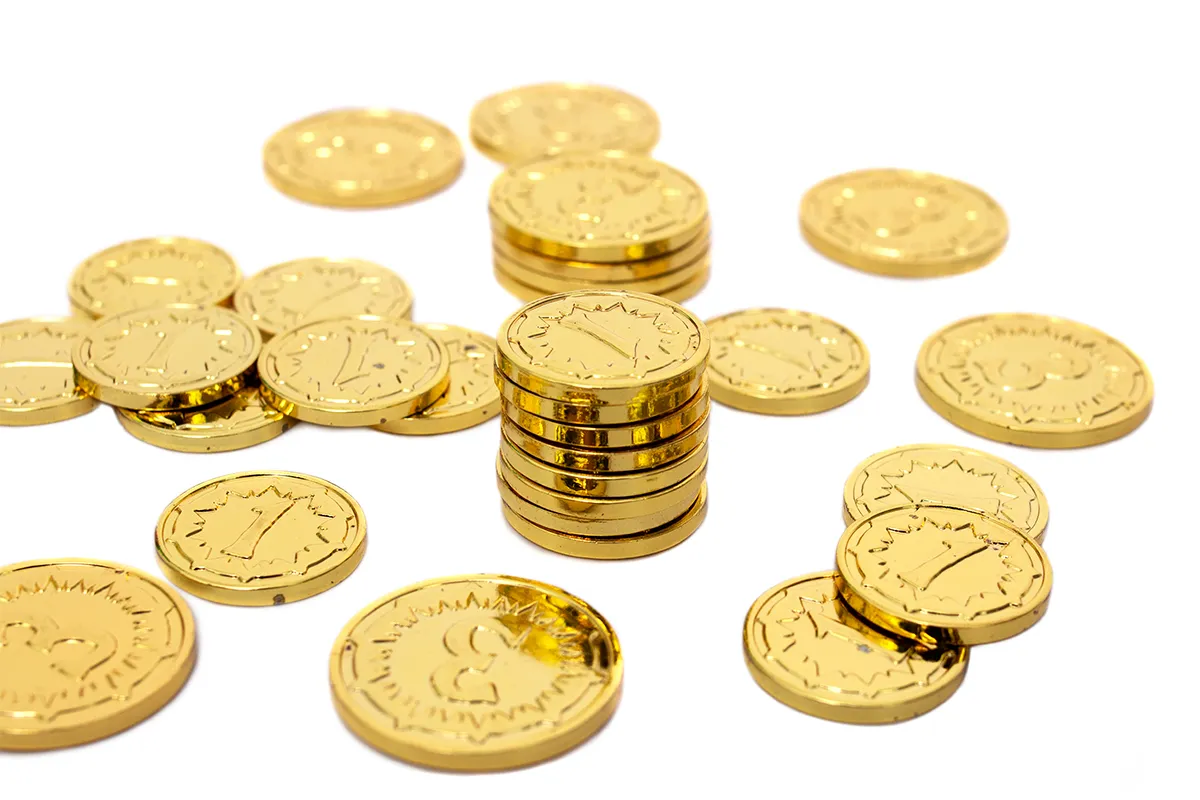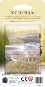 Łącznie w opakowaniu znajduje się 50 metalowych monet, co w zupełności wystarcza do komfortowej gry w pełnym składzie osobowym.