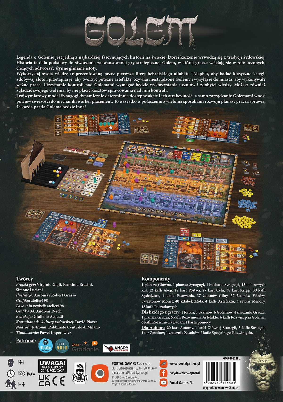 Dla najwspanialszego miasta w Europie nastał dzień próby. Jesteście rabinami sprawującymi tajemnicze obrzędy, a kroczące w ciemnych uliczkach gliniane golemy są waszym dziełem. Zbierajcie niezbędne surowce, twórzcie potężne artefakty i zdobywajcie cenną wiedzę. Dróg do zwycięstwa jest wiele. Czy uda wam się obrać odpowiednią strategię i pokonać swoich przeciwników?
