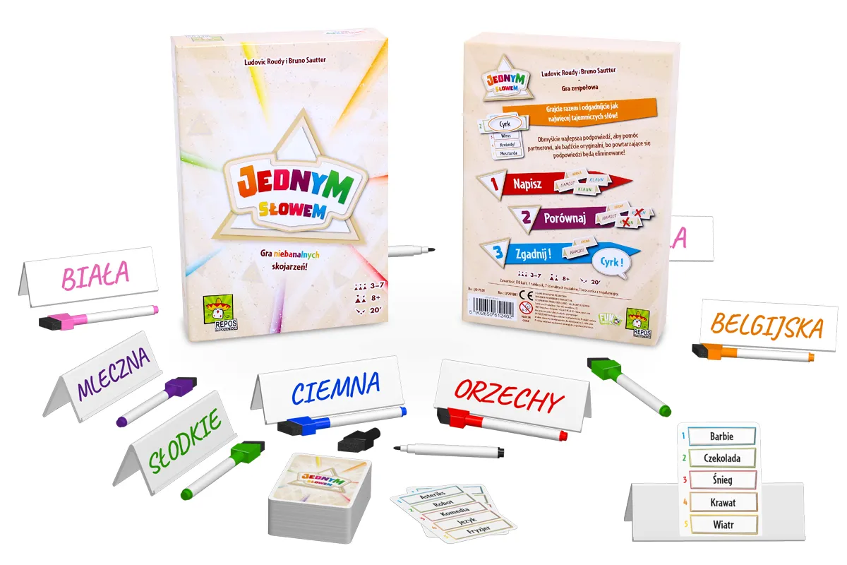 Czy potrafisz podać idealną wskazówkę, używając tylko jednego słowa? Jednym słowem to wielokrotnie nagradzana, imprezowa gra kooperacyjna, która udowadnia, że czasem mniej znaczy więcej. Tutaj nie gracie przeciwko sobie – tworzycie jedną drużynę, której celem jest zdobycie jak najlepszego wyniku poprzez sprawne komunikowanie się... bez zbędnych słów!