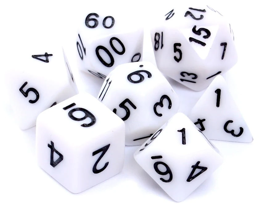 Komplet siedmiu klasycznych, jednokolorowych kości marki Rebel. Niezwykle wysoka jakość odlewu, precyzja żłobienia oraz malowania numerów, czynią z nich podstawowy wybór dla wielu graczy, zarówno początkujących, jak i zaawansowanych.