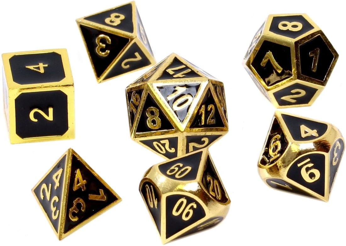 Komplet kości REBEL RPG - Metal - Tłoczone czarne złoto