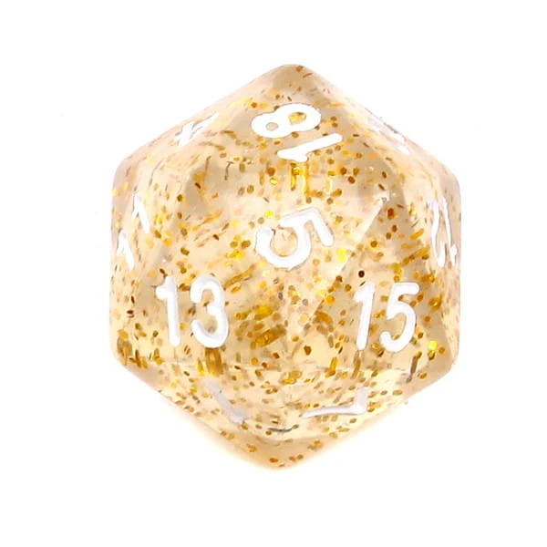 Kość REBEL brokatowa 20 Ścian - Cyfry - Żółta