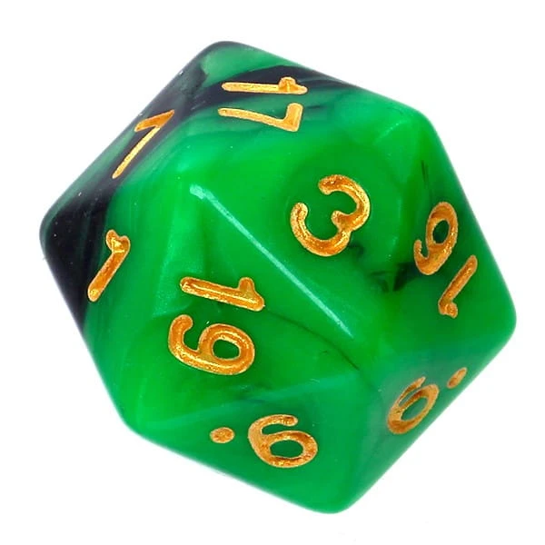 Kość REBEL dwukolorowa 20 Ścian - Cyfry złote - Zielono-czarna