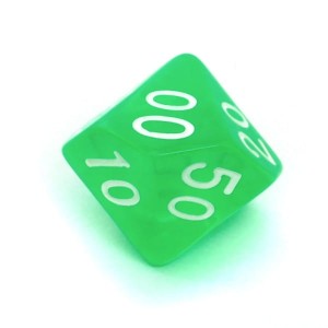 Kość REBEL kryształowa 10 Ścian (setka) - Cyfry - Jasnozielona
