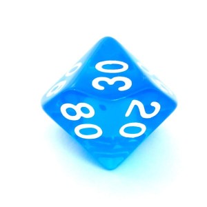 Kość REBEL kryształowa 10 Ścian (setka) - Cyfry - Niebieska