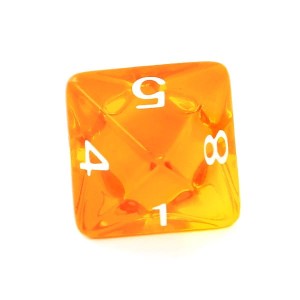 Kość REBEL kryształowa 8 Ścian - Cyfry - Pomarańczowa