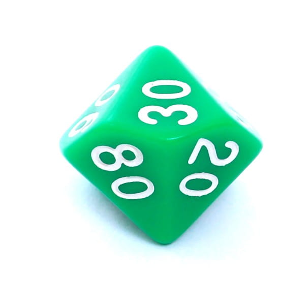Kość REBEL matowa 10 Ścian (setka) - Cyfry - Zielona