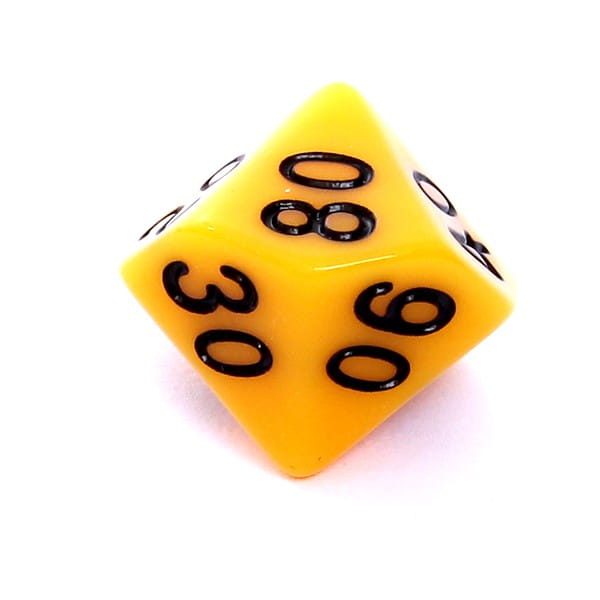 Kość REBEL matowa 10 Ścian (setka) - Cyfry - Żółta