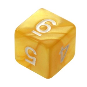 Kość REBEL perłowa 6 Ścian - Cyfry białe - Żółta