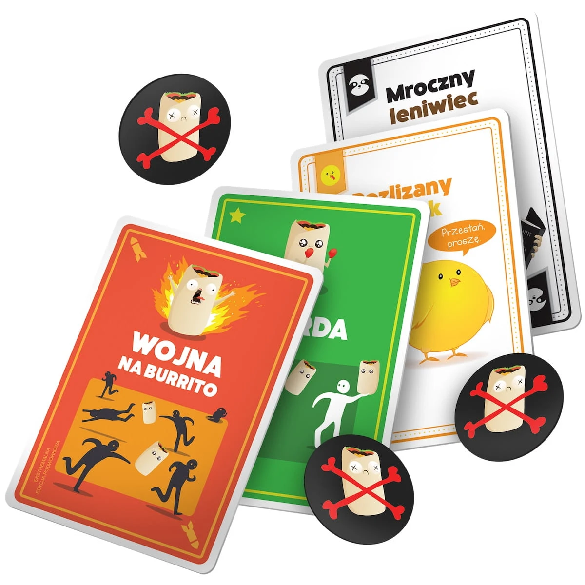 Oto gra imprezowa, jakiej jeszcze świat nie widział! Połączenie dynamicznej karcianki o prostych zasadach i koszmaru z czasów szkolnych: zbijaka. Dobieraj karty, unikaj burrito, rzucaj w przeciwników. Gdy zbierasz zestawy – zdobywasz punkty. Gdy oberwiesz burrito – tracisz je. A przecież wszyscy chcemy mieć ich jak najwięcej!