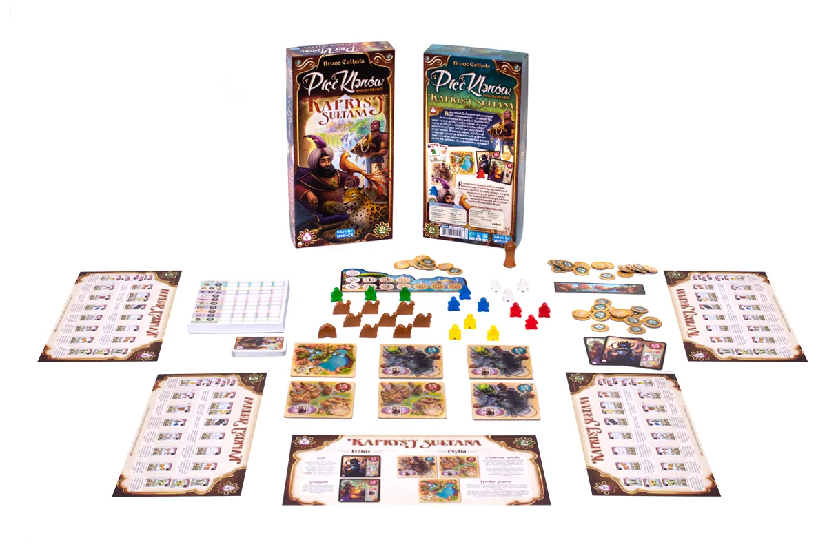 Pięć Klanów to bestsellerowa gra strategiczna z modularną planszą, w której klasyczna mechanika mankali (przesuwania elementów) została przeniesiona na wyższy poziom. Jako przybysze w Naqali, manipulujecie klanami zabójców, mędrców, budowniczych, kupców i wezyrów, by zdobywać punkty z handlu, kontroli terytoriów i pomocy dżinów. Każda partia to nowa łamigłówka, wymagająca błyskotliwego planowania i przewidywania ruchów przeciwników.