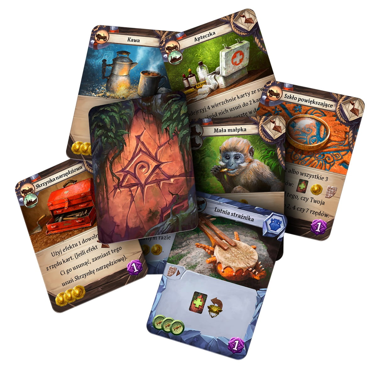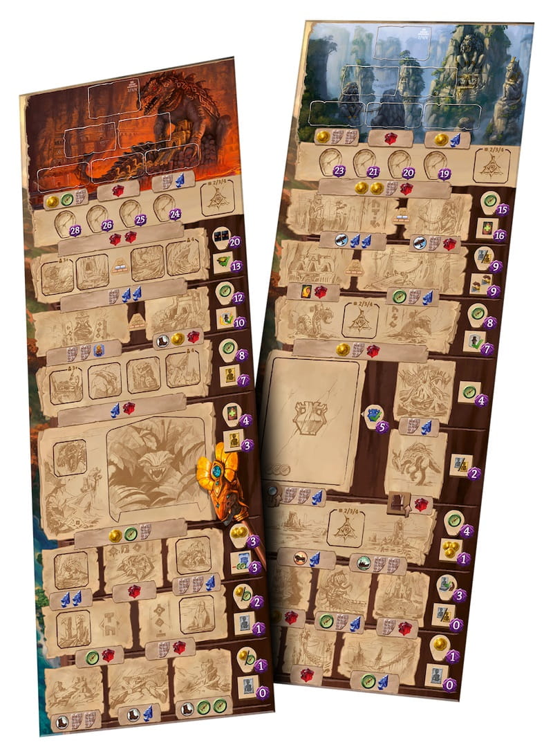 - 2 nowe świątynie do eksploracji: Świątynia Małpy oraz Świątynia Jaszczura. Możemy ich używać zarówno z przywódcami ekspedycji, jak i bez nich, alternatywnie do terenów z wersji podstawowej. Aby zagrać z użyciem jednego z nowych torów badań, należy go po prostu umieścić na torze badań z dowolnej strony standardowej planszy.