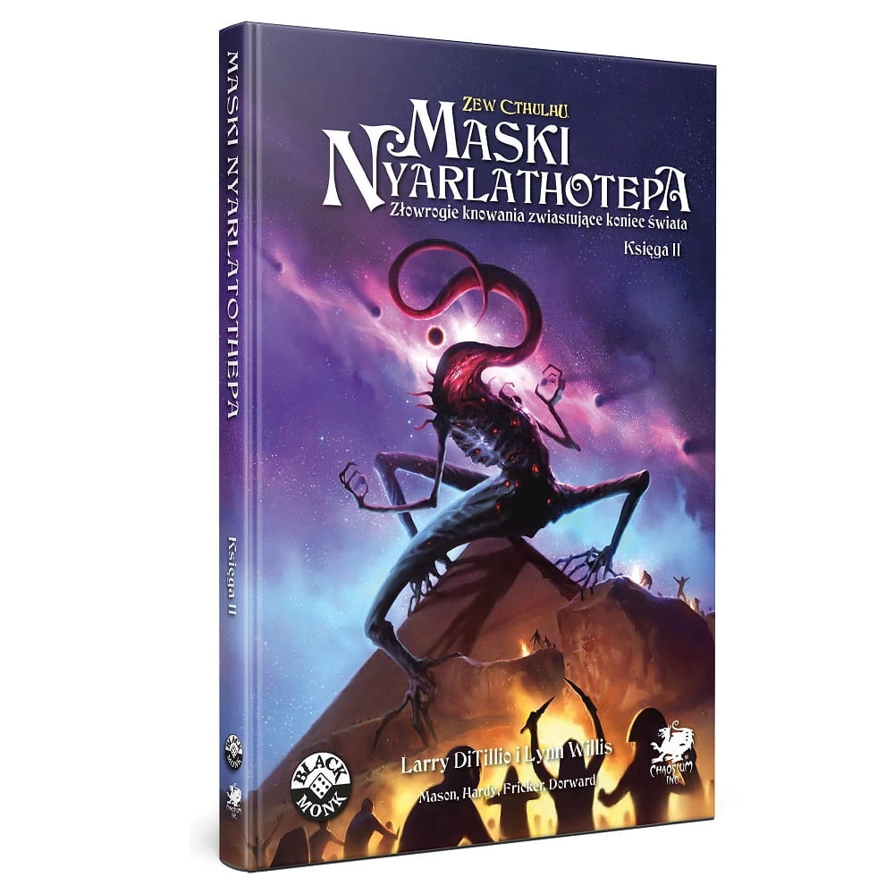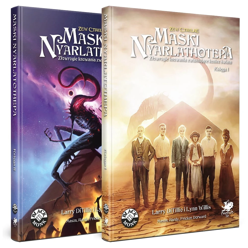 Maski Nyarlathotepa to dzisiaj jedna z najbardziej rozpoznawalnych kampanii do Zewu Cthulhu. Jej rozmach i spektakularność w wieloczęściowym wydaniu pozwoli Badaczom Tajemnic wyruszyć podróż pełną niebezpieczeństw przez sześc różnych kontynentów, a ich cel - poznać prawdziwe losy zaginionej ekspedycji Rogera Carlyle'a. Znajdujące się w zestawie dwa pięknie zilustrowane tomy wypełnione są dodatkowymi przygodami, dużą dawką detali historyczno-geograficznych oraz bluźnierczym okultyzmem.