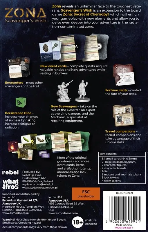 Zona: Scavenger's Wish is an expansion that allows players to dive even deeper into the radioactively contaminated exclusion zone. This English edition brings fresh mechanics and higher stakes to your survival experience.