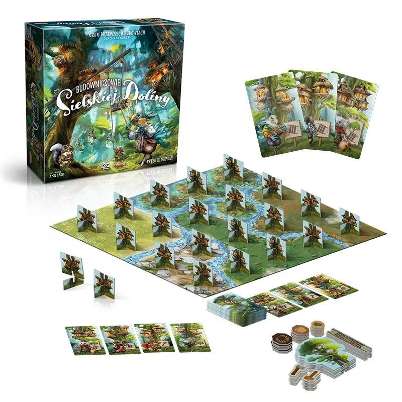 Budowniczowie Sielskiej Doliny to unikalna, trójwymiarowa gra typu tile placement, w której gracze umieszczają kafelki budynków na coraz wyższych poziomach koron drzew.