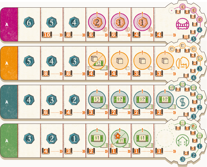 - Każdy z graczy zaczyna z identyczną pulą możliwości, ale rozbudowywanie firm o nowe działy szybko różnicuje nasze strategie. W połączeniu ze zmiennymi elementami takimi jak płytki osi czasu otrzymujemy planszówkę, która za każdym razem toczy się nieco inaczej.