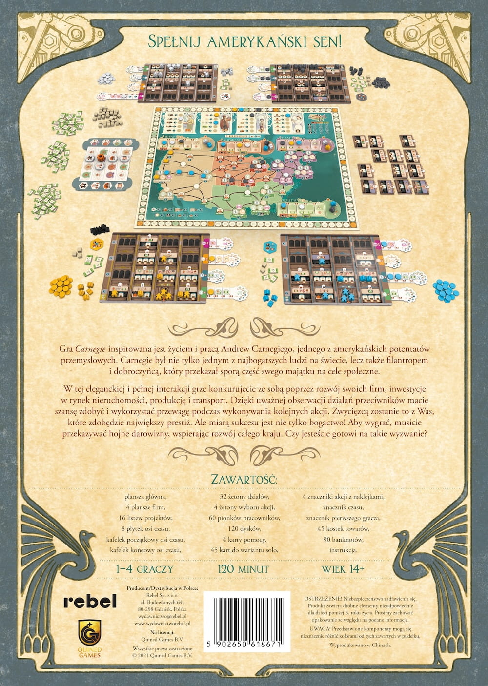 Zbuduj imperium handlowe i zaskocz wszystkich hojnością niczym Andrew Carnegie – ucieleśnienie amerykańskiego snu. To właśnie życiem i pracą jednego z amerykańskich potentatów przemysłowych została zainspirowana ta wielowymiarowa gra strategiczna. Carnegie był nie tylko jednym z najbogatszych ludzi na świecie, lecz także filantropem i dobroczyńcą, który przekazał sporą część swego majątku na cele społeczne.