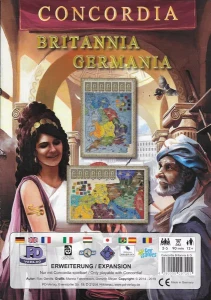 Concordia: Britannia / Germania to oficjalne rozszerzenie do strategicznej gry planszowej Concordia, oferujące dwustronną planszę z dwiema unikalnymi mapami, które wprowadzają odmienne wyzwania i mechaniki.