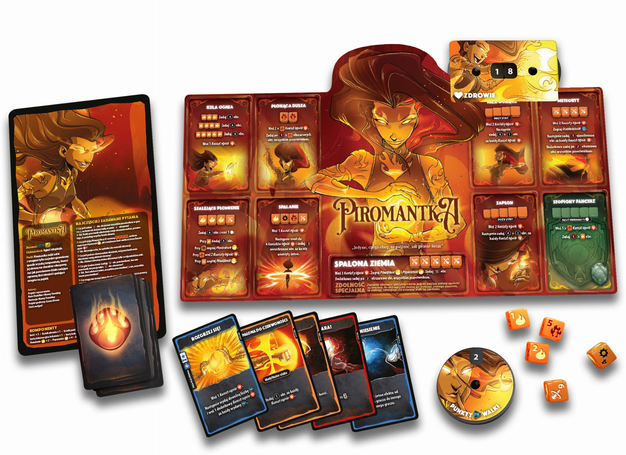 Zawartość pudełka z gra Dice Throne: Starcie 3 - Piromantka vs Mroczny Złodziej: