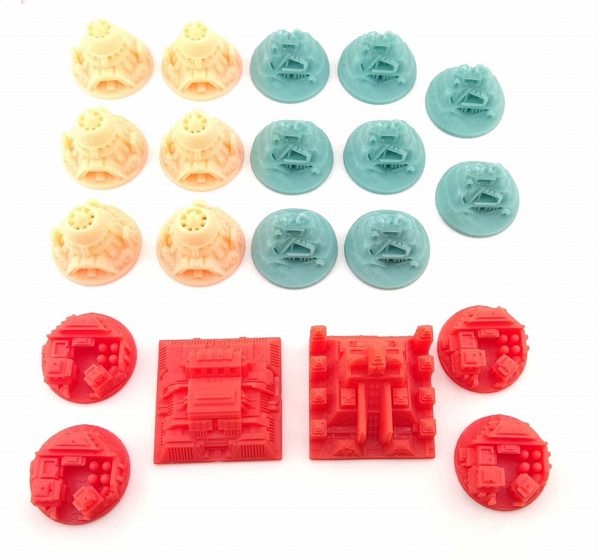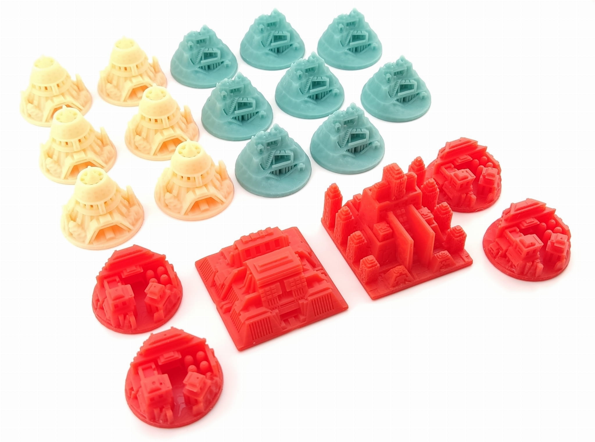 Przedstawiamy zestaw budynków przygotowanych do gry planszowej Dune: Wojna o Arrakis wydrukowany z kolorowych żywic światło utwardzalnych.