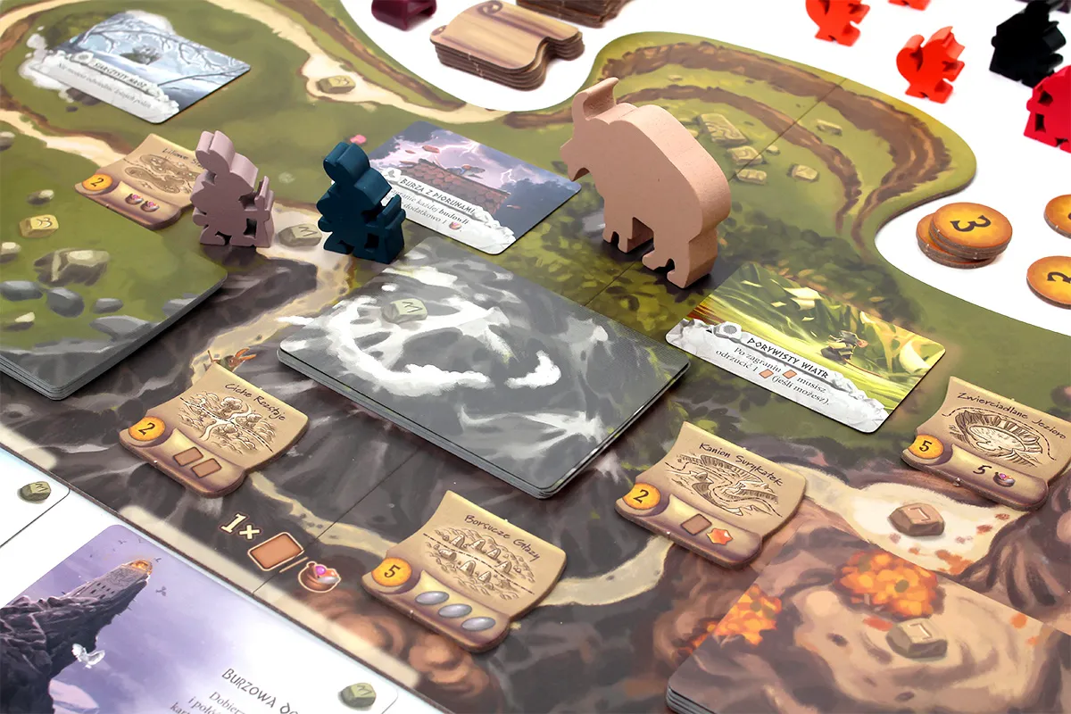 Wyprawy i fragmenty map: Podczas podróży przez góry Twoje stworzenie zbiera fragmenty mapy. To one pozwolą Ci zaplanować finałową ekspedycję na końcu gry, która może przynieść ogromną liczbę punktów zwycięstwa.