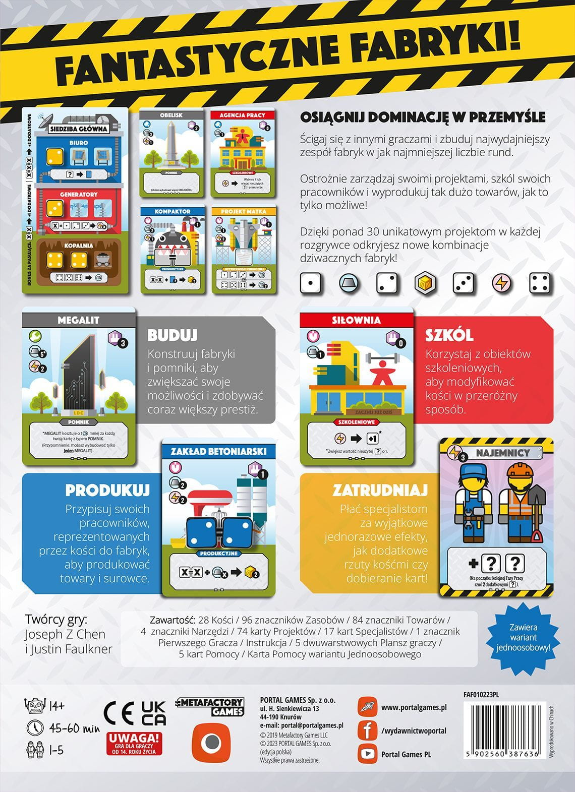 Ścigaj się z innymi graczami i zbuduj najwydajniejszy zespół fabryk w jak najmniejszej liczbie rund. Ostrożnie zarządzaj swoimi projektami, szkól pracowników i wyprodukuj tak dużo towarów, jak to tylko możliwe. Buduj, szkól, produkuj i zatrudniaj... w tej sprytnej grze o zarządzaniu kośćmi i tworzeniu swojego silniczka z kart!