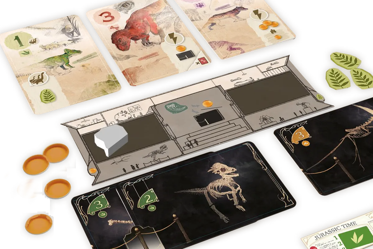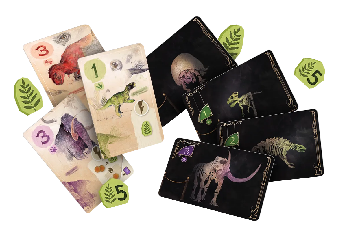 Dylemat Paleontologa: Karty w obszarze badań dają Ci przewagę taktyczną – ułatwiają zdobywanie bursztynu, obniżają koszty lub generują punkty. Jednak tylko wystawienie ich w muzeum (co kosztuje cenny bursztyn) zapewnia Ci żetony punktacji. Pamiętaj: wyeksponowana karta traci swoje unikalne efekty!