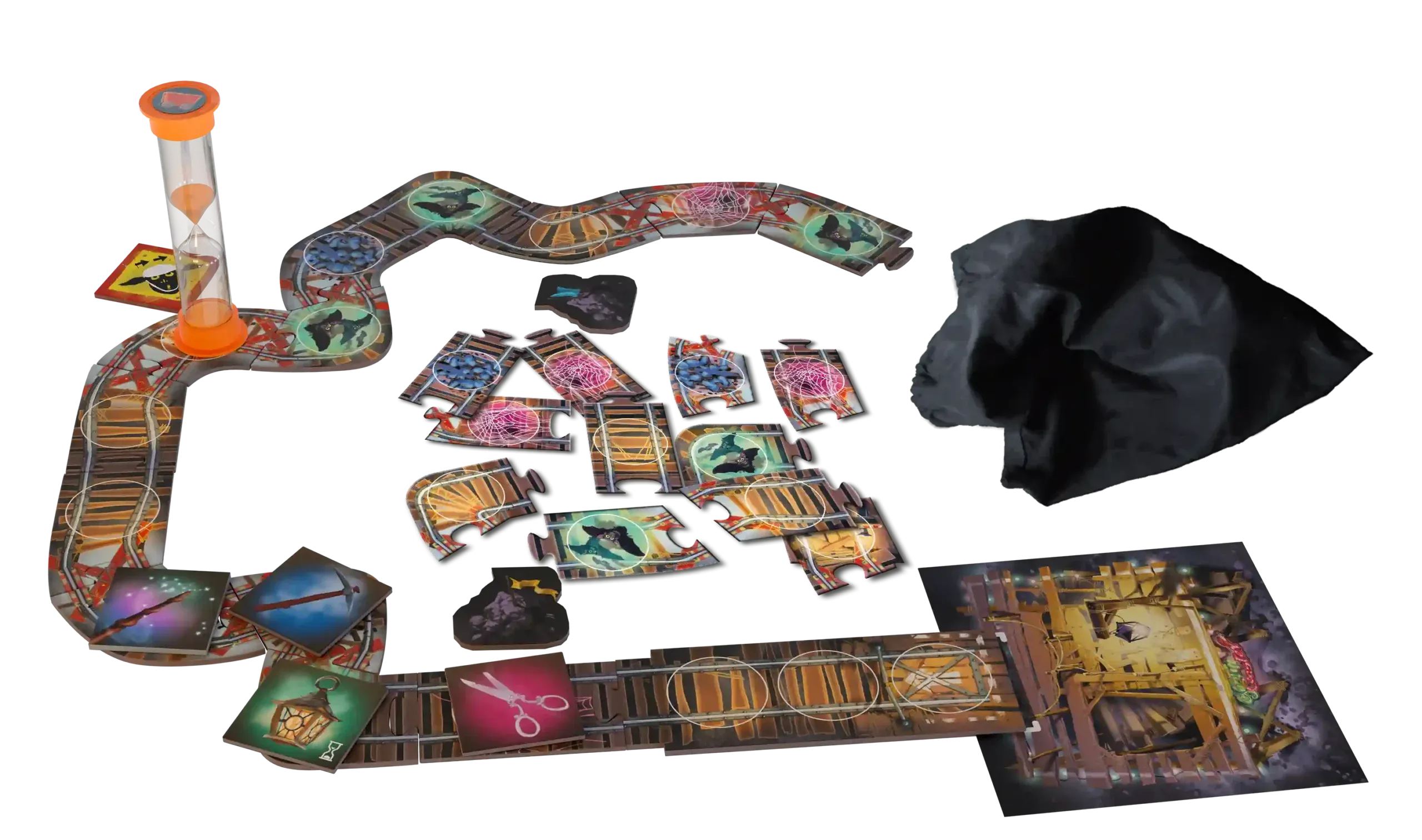 Przeszkody w mroku: Droga nie jest prosta! Na torach czekają skalne rumowiska, pajęczyny i stada nietoperzy. Aby je ominąć, musicie losować odpowiednie narzędzia i wspólnie stawiać czoła wyzwaniom.