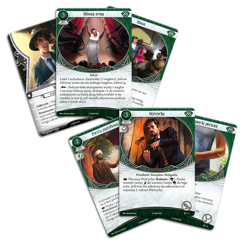 Wysoka jakość komponentów: Karty są w pełni kompatybilne z całą linią wydawniczą Horror w Arkham: Gra karciana.