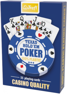 Profesjonalne, plastikowe karty do gry. Przygotowane zgodnie z nowymi standardami. Na awersach zastosowano klasyczny, międzynarodowy wzór używany w kasynach na całym świecie. Powiększony indeks pomaga zwłaszcza w rozgrywkach w coraz popularniejszą wersje pokera - Texas Hold’em.