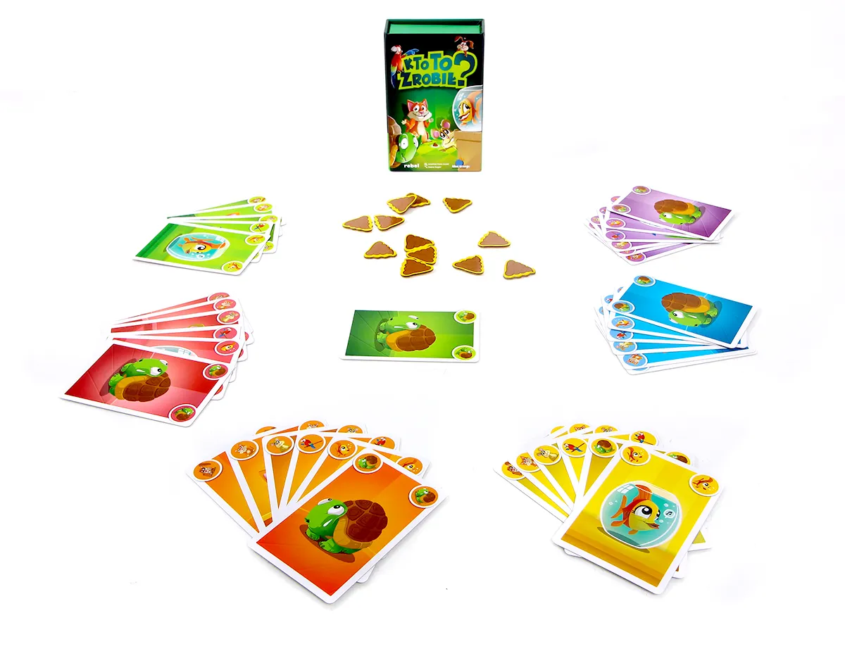Kto to zrobił? czerpie to, co najlepsze z klasyków takich jak Dobble czy Jungle Speed, dodając do tego unikalny, zabawny motyw przewodni: