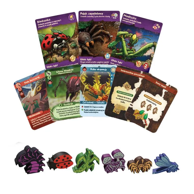 Przygotuj się na nowe wyzwania, które na zawsze zmienią życie wewnątrz i na zewnątrz mrowiska. Rozszerzenie Marsz Mrówek: Drapieżniki i Ofiary to potężny zastrzyk zawartości, który pogłębia strategiczną głębię gry podstawowej. Wprowadza ono nowe karty mrówek, kafle nagród Wielkiego Tunelu oraz zupełnie nowe obszary poza łąką, otwierając przed Twoją kolonią niespotykane wcześniej ścieżki rozwoju i niebezpieczeństwa.