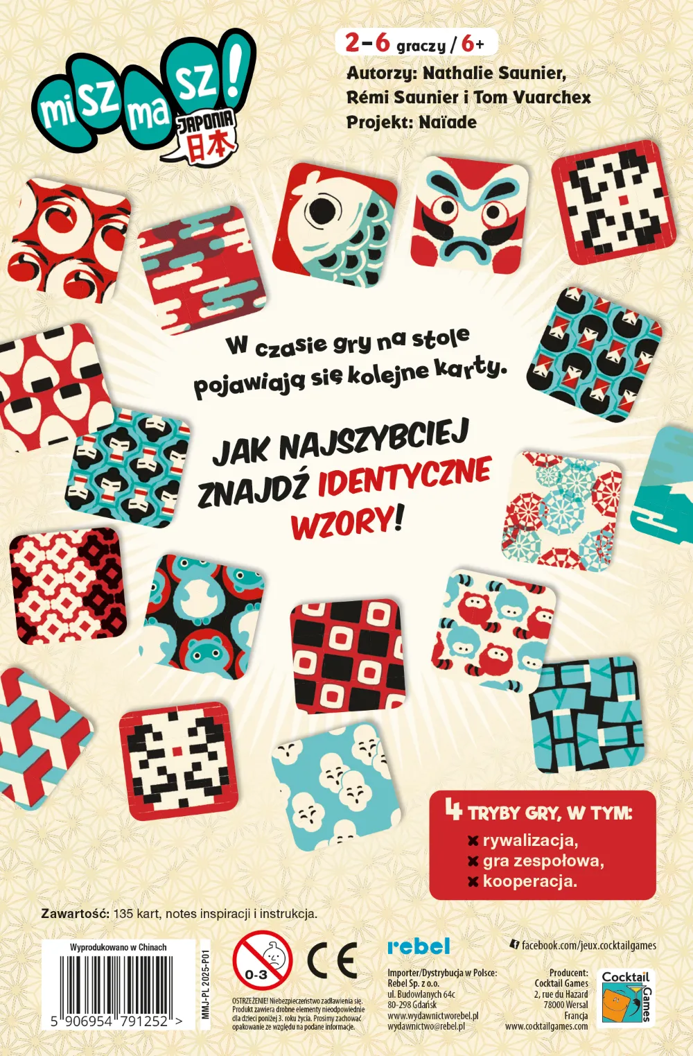 Zanurz się w świecie dalekowschodnich symboli, gdzie liczy się każda sekunda! Miszmasz! Japonia to nowa, niezwykle dynamiczna odsłona imprezowego hitu, która rzuca wyzwanie Twojemu refleksowi. Tym razem autorzy postawili na intrygujące, geometryczne grafiki inspirowane kulturą Japonii. Prosta paleta kolorów i spójny styl sprawiają, że odnalezienie pary wśród niewielkich obrazków to prawdziwy sprawdzian dla oka i umysłu.