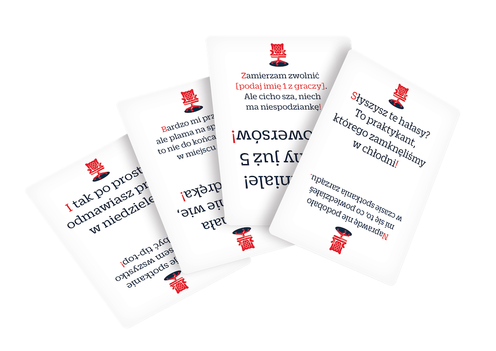 - Na początku szef dobiera tyle kart zaczepek, ilu jest podwładnych. Pozostali gracze dostają po jednej karcie odzywki.