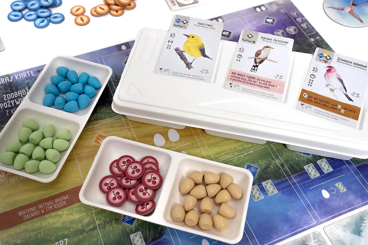 Złóż Jaja: Rozmnażaj swoje ptaki, umieszczając kolorowe figurki jajek na kartach w rezerwacie – są one kluczowe do dalszego rozwoju i punktacji.