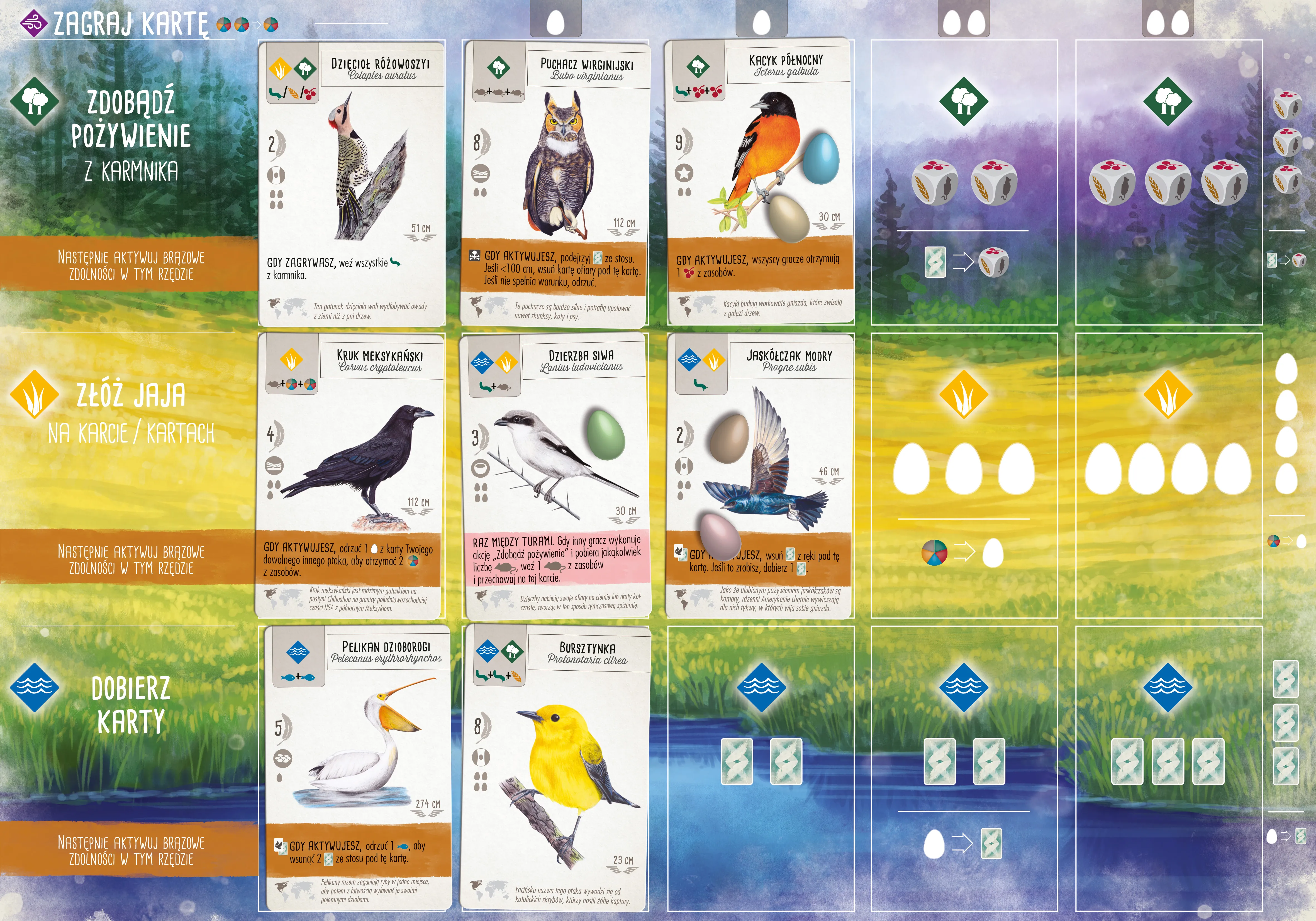 Magia Synergii: Wykonując trzy ostatnie akcje, aktywujesz jednocześnie wszystkie zdolności ptaków już zamieszkujących dany rząd. Dzięki temu z każdą turą Twoje działania stają się potężniejsze i dają więcej korzyści!