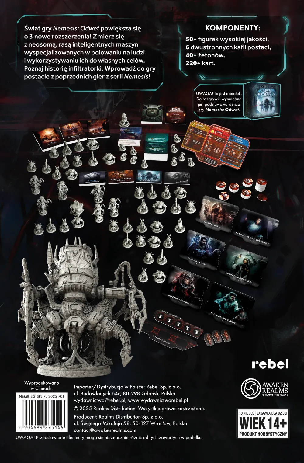 Wzbogać swoje doświadczenia w mrocznym uniwersum dzięki zbiorczemu zestawieniu nowych wyzwań. Nemesis: Odwet – Zawartość dodatkowa to unikalny pakiet zawierający aż trzy rozszerzenia, które wprowadzają do bazy nowe postacie, niespotykane dotąd zagrożenia oraz głęboką warstwę fabularną. To pudełko jest kluczem do odkrycia pełnego potencjału trzeciej odsłony serii, oferując narzędzia do personalizacji każdej misji.