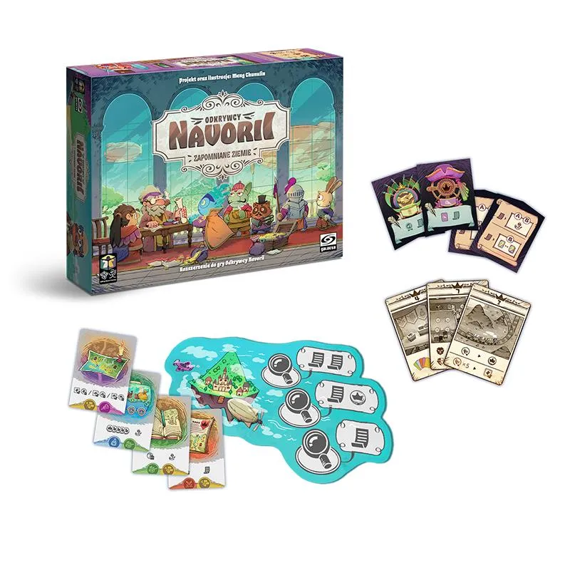 Twoje mapy pokryły już znaczną część Navorii, ale królewscy zwiadowcy donoszą o pogłoskach o zapomnianych krainach, które czekają tuż za horyzontem. Dodatek Zapomniane Ziemie do gry Odkrywcy Navorii pozwala wam kontynuować wielką wyprawę, wprowadzając nowe tereny, nowe wyzwania i, co najważniejsze, możliwość gry w jeszcze większym gronie.