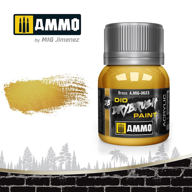 Drybrushing (technika suchego pędzla) to technika modelarska stosowana od dziesięcioleci, nadająca głębi i przestrzenności naszym modelom, podkreślając różne tekstury i detale. Jest to wszechstronna, uniwersalna i łatwa w użyciu metoda pozwalająca uzyskać przekonujący, autentyczny efekt w kilku ruchach. AMMO: DIO Drybrush to nowa formuła farb specjalnych do drybrushingu. Farby z tej serii cechują się idealną gęstością, wysoką jakością i specyficznymi właściwościami, które czynią je najlepszymi produktami do tej techniki. Słoiczki farb posiadają bardzo szeroką szyjkę, która ułatwia nabieranie farby. Farba stworzona jest na bazie wody, jest łatwa w czyszczeniu, nietoksyczna i bezwonna. Farby wysychają bardzo szybko, modele po pomalowaniu można dotknąć w przeciągu kilku minut. Są odporne na zmywanie olejem. Produkty Ammo of Mig Jimenez to doskonałe narzędzia dla pasjonatów, znajdziesz tutaj wszystko, czego potrzebujesz do tworzenia niesamowicie realistycznych efektów na swoich modelach i figurkach.