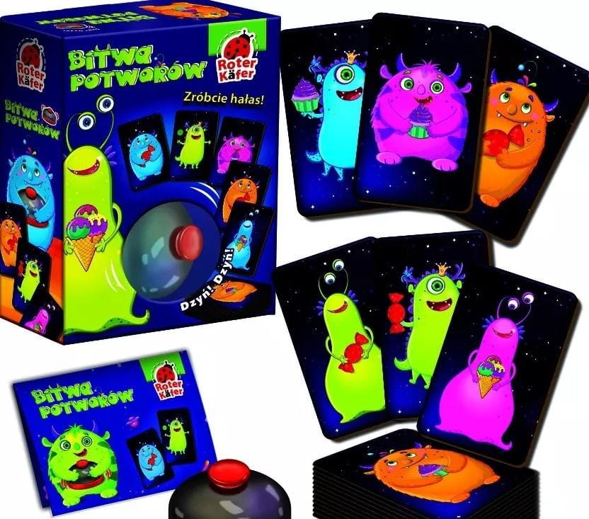 Właśnie teraz nastał czas mnóstwa zabawy! Przygotowaliśmy dla ciebie dynamiczną grę na spryt i szybkość reakcji! Zwołaj przyjaciół, i spieszcie się na wyścigi zbierać kartki z dobrymi potworkami! Dzyń! kto szybciej?