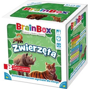 Poznaj sekrety stworzeń z najróżniejszych zakątków naszej planety z BrainBox - Zwierzęta! Na 54 kartach znajdziesz informacje zarówno o puchatych szynszylach, jak i ryczących lwach i tygrysach, a angażujący sposób rozgrywki sprawi, że Twoje dziecko bez wysiłku będzie poszerzało swoją wiedzę! Czym jest BrainBox? To seria wyjątkowych gier edukacyjnych, które będą wspierały rozwój Twoich dzieci lub podopiecznych na każdym etapie nauki. Wykorzystując dynamiczną i angażującą zabawę, gry z linii BrainBox pozwalają rozwijać wiedzę, a także wspierają trening pamięci i spostrzegawczości, czyli umiejętności kluczowych dla rozwoju. Każde pudełko to zestaw kart, które po jednej stronie mają obrazek (należy przyjrzeć mu się przez określony czas), a z drugiej zestaw pytań, sprawdzających nie tylko naszą pamięć, ale też wiedzę z zakresu danego przedmiotu. Na czym to polega? Weź kartę z pudełka i odwróć klepsydrę. Przyglądaj się obrazkowi na karcie tak długo, jak przesypuje się piasek. Możesz przekręcić klepsydrę jeszcze raz, jeśli potrzebujesz więcej czasu. Przekaż kartę innemu graczowi i rzuć kością. Liczba na kości wskazuje, na które pytanie musisz odpowiedzieć (na przykład gdy wyrzucisz 2, odpowiadasz na pytanie numer 2). Gracz, któremu została przekazana karta, czyta na głos pytanie, na które musisz udzielić odpowiedzi. Następnie sprawdza Twoją odpowiedź, patrząc na obrazek na drugiej stronie karty. Jeśli odpowiedź jest prawidłowa, zatrzymaj kartę. Jeśli jest błędna, odłóż kartę do pudełka. Teraz kolej na następnego gracza. Gracz, który zgromadzi najwięcej kart po upływie 10 minut, wygrywa! Dlaczego pokochasz tę grę? To połączenie doskonałej, dynamicznej zabawy z realnym rozwijaniem wiedzy z konkretnych dziedzin. Testy wykazały, że gry z serii BrainBox stanowią doskonałe rozszerzenie nauki przedszkolnej i szkolnej; nadają się do wykorzystania zarówno w szkole, jak i w domu. BrainBoxy są dostosowane do wspólnej zabawy dzieci i dorosłych, by była ona satysfakcjonująca dla obu stron. Gry powstają w etycznych warunkach, z materiałów pochodzących z recyklingu i zdatnych do ponownego przetworzenia.