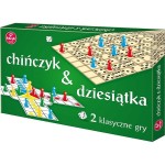 Zestaw do gry Dziesiątka zawiera: planszę, 8 pionków (po cztery w jednym kolorze), kostkę do gry.