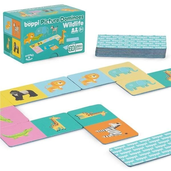 Boppi, domino rysunkowe Safari to wspaniała zabawa i nauka. Zestaw zawiera 28 elementów z pięknymi ilustracjami dzikich zwierząt. Spróbujcie ułożyć kolorowe płytki domina obok siebie dopasowując je parami. Oczywiście zasada wygrania wciąż ta sama: wygrywa ten zawodnik, który jako pierwszy pozbędzie się wszystkich płytek. Układanie i dopasowywanie płytek domina doskonale rozwija wyobraźnię przestrzenną, ćwiczy koncentrację i logiczne myślenie. Produkt wykonany z wytrzymałej tektury pochodzącej z recyklingu.