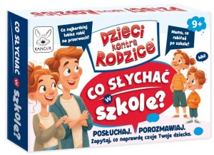 Dzieci kontra Rodzice. Co słychać w szkole? To gra, która zamienia zwykłe pytanie "Jak było w szkole?" w prawdziwą rozmowę. Pomaga dzieciom opowiadać o swoich doświadczeniach, emocjach i relacjach, a rodzicom lepiej je zrozumieć. Gra nie sprawdza wiedzy. Otwiera rozmowę, buduje zaufanie i pomaga lepiej się zrozumieć. Idealna do wspólnego spędzania czasu i wzmacniania relacji.