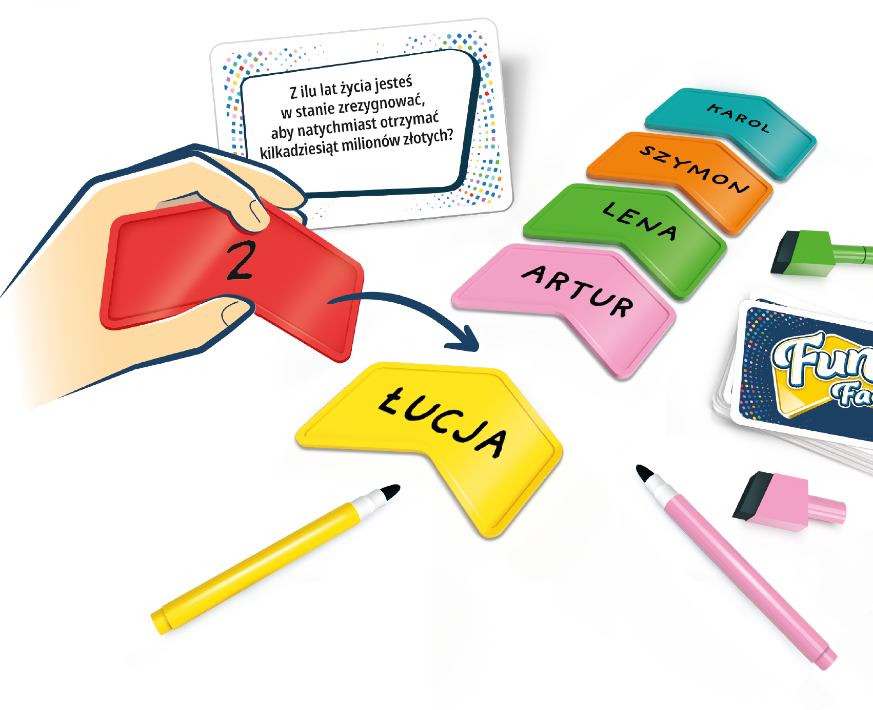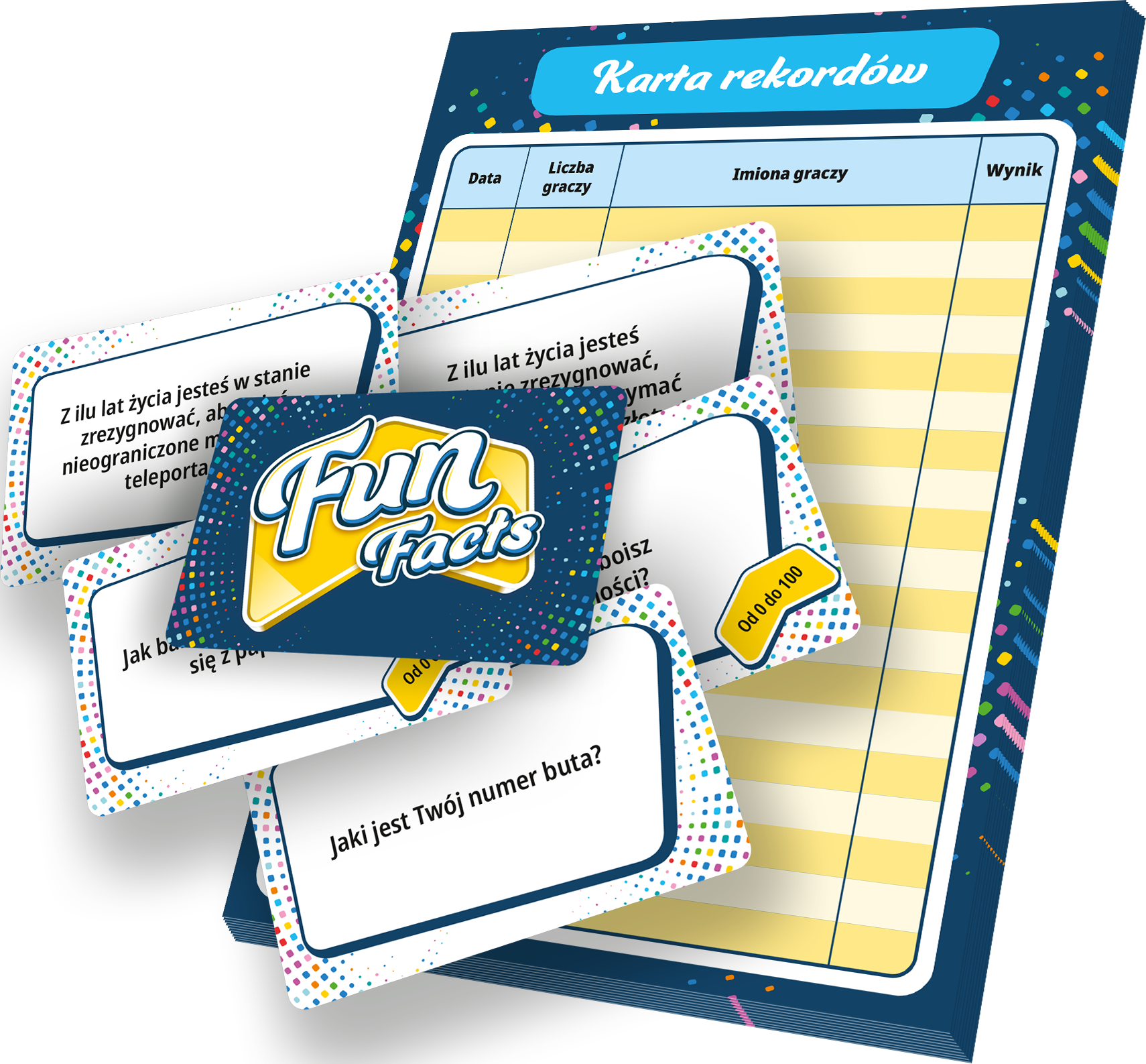 Czy myślisz, że ty i twoi przyjaciele dobrze się znacie? Fun Facts to imprezowa gra planszowa, w której to sprawdzisz! W każdej rundzie czytasz na głos dość osobiste pytanie, na które odpowiadasz, wpisując numer na strzałce. Spróbuj zgadnąć, jak odpowiedzieli inni gracze i uszereguj swoje odpowiedzi w kolejności rosnącej. Sprawdź je i przekonaj się, czy masz rację!