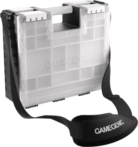 Gamegenic: Game Castle to dwustronna walizka do przechowywania i transportowania różnego rodzaju gier planszowych i karcianych. Ten innowacyjny produkt pozwala z jednej strony przechowywać do 800 zakoszulkowanych kart, z drugiej strony posiada dedykowane miejsce na niezbędne akcesoria. Gamegenic: Game Castle zapewnia bardzo łatwy dostęp do przechowywanych elementów i ułatwia uporządkowanie kolekcji dzięki 6 wyjmowalnym pojemnikom na karty i 19 wyjmowalnych tacek w różnych rozmiarach na akcesoria. Cechy produktu: kompaktowa i wytrzymała walizka do przechowywania kart i akcesoriów wygodne rozwiązanie do przechowywania i transportowania wygodny pasek z rączką do łatwego przenoszenia walizki produkt idealny dla kart, żetonów, kostek, miarek, tarcz i innych akcesoriów dwustronna walizka otwierana z przeciwnych stron, zapewnia niezależny dostęp do kart i akcesoriów 6 wyjmowalnych pojemników na karty mieszczących: 6 klasycznych, podwójnie zakoszulkowanych talii Commander lub do 600 kart zakoszulkowanych podwójnie w koszulki extra Thick Inner Sleeves lub do 800 pojedynczo zakoszulkowanych kart 19 wyjmowanych tacek w 5 rozmiarach 12 małych tacek 2 tacki w rozmiarze kart Mini-American (pomieści do 40 zakoszulkowanych kart lub do 75 niezakoszulkowanych kart) 2 podwójne tacki 2 tacki w rozmiarze kart Standard (pomieści do 40 zakoszulkowanych kart lub do 75 niezakoszulkowanych kart) 1 super długa tacka (około 30 cm) walizka kompatybilna z prduktami Token Silo i Token Silo Cards Add-on innowacyjne, stabilne zamknięcie produkt wykonany z wytrzymałych materiałów odpornych na uszkodzenia