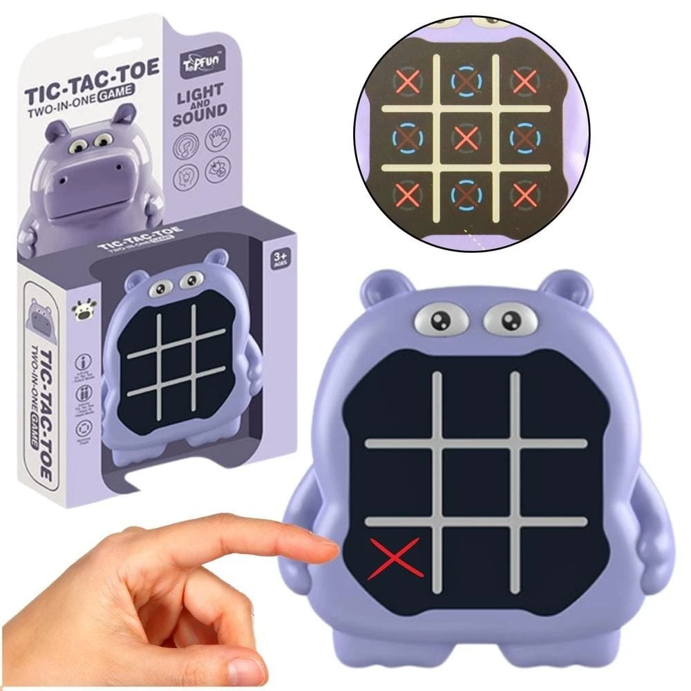 ELEKTRONICZNA GRA HIPOPOTAM 3W1 Elektroniczna Gra Hipopotam 3w1 to nowoczesna odsłona klasycznej gry Kółko i Krzyżyk, oferująca jeszcze więcej emocji, interaktywnej zabawy i edukacyjnych korzyści! Dzięki połączeniu strategii, refleksu oraz ćwiczenia pamięci, gra doskonale wspiera rozwój intelektualny dzieci, a jednocześnie dostarcza rozrywki zarówno najmłodszym, jak i dorosłym. Innowacyjne funkcje, takie jak efekty świetlne i dźwiękowe, sprawiają, że rozgrywka staje się jeszcze bardziej angażująca. Kolorowy design inspirowany uroczym hipopotamem przyciąga uwagę dzieci, zachęcając je do aktywnej zabawy. Lekka i kompaktowa konstrukcja umożliwia zabranie gry w dowolne miejsce - do szkoły, w podróż, na wakacje czy spotkanie z przyjaciółmi. Dzięki trzem różnym trybom gry, zabawa staje się jeszcze bardziej różnorodna i rozwijająca: Kółko i Krzyżyk - tradycyjna gra strategiczna, ucząca planowania i przewidywania ruchów przeciwnika. Rozgrywka w parach - idealna forma wspólnej zabawy dla dwóch graczy, wspierająca rozwój umiejętności społecznych i zdrowej rywalizacji. Memory - doskonałe ćwiczenie pamięci i koncentracji poprzez odnajdywanie par. Elektroniczna Gra Hipopotam 3w1 to idealny wybór dla dzieci oraz dorosłych, którzy cenią sobie innowacyjne podejście do klasycznych gier i dynamiczną rozgrywkę. To nie tylko doskonała zabawa, ale również świetne narzędzie edukacyjne, rozwijające logiczne myślenie, spostrzegawczość oraz pamięć. Z Elektroniczną Grą Hipopotam 3w1 zapewnisz swojemu dziecku wartościową i wciągającą rozrywkę, która uczy i bawi jednocześnie! SPECYFIKACJA: Wymiary gry: 12 x 11,5 x 3 cm Wymiary opakowania: 26,5 cm x 15 cm x 4 cm Materiał: wysokiej jakości tworzywo sztuczne Zasilanie: 2 x 1,5 V AA (w zestawie) Maksymalna liczba graczy: 2 Rodzaj gry: elektroniczna, edukacyjna Tryby gry: 3 tryby - Kółko i Krzyżyk, Gra w parach, Memory Efekty dźwiękowe: tak Efekty świetlne: tak, podświetlana plansza Motyw: Hipopotam Przeznaczenie: dzieci, dorośli, rodzinna rozgrywka ZAWARTOŚĆ ZESTAWU: Elektroniczna gra Hipopotam 3w1 Instrukcja obsługi
